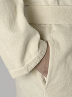Entdecken Sie den klassisch-sportlichen Frottiermantel der renommierten Marke Abyss Habidecor in unserem Online-Shop. Der gerade Schnitt verleiht diesem Mantel eine zeitlose Eleganz. Mit einer rückseitig angebrachten Naht ist der Gürtel stets griffbereit und sorgt für einen perfekten Sitz. Hergestellt aus hochwertigem Kurzmantel-Frottier mit einem Gewicht von 350 g/qm, bietet er eine herausragende Verarbeitung und Qualität. Unser Frottiermantel besteht aus der exklusiven Giza70-Baumwolle, einer ägyptischen Baumwolle mit extra langen Fasern von 30-45 mm Länge. Durch die natürliche und umweltschonende Veredelung der Giza-Baumwolle erhalten wir einen Stoff von herausragender Qualität. Er fühlt sich unglaublich weich und seidig an, ist äußerst langlebig und nachhaltig. Genießen Sie den hohen Komfort, den dieser Mantel Ihnen bietet. Bei Abyss Habidecor haben Sie zudem die Möglichkeit, Ihren Mantel individuell anzupassen. Gegen einen geringen Aufpreis können Sie die Gesamtlänge und Ärmellänge nach Ihren Wünschen wählen. Kontaktieren Sie uns einfach und wir kommen ihren Wünschen nach. Um Ihr perfektes Outfit abzurunden, bieten wir Ihnen passende Handtücher, Slipper und ein Haartuch an. Entdecken Sie jetzt die vielseitigen Möglichkeiten und bestellen Sie Ihre gewünschten Produkte bequem in unserem Online-Shop.