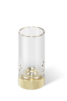 Das 2 teilige Set besteht aus einem Mundglas aus Kristallglas mit feinem Schliff und einem Sockelring aus Massivmessing, dessen Oberfläche eine feine Strukturierung enthält. Inspiriert von dem Stil der Londoner Herrenclubs verfügt die komplette Serie über ein Erkennungszeichen, die dezente Rippenstruktur, die in den feinen Details steckt. Die mondäne Kombination aus klassischen Elementen und modernen Produktionstechniken verkörpert Kult in einem modernen Kontext.