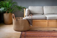 Entdecken Sie unsere leichtgewichtigen Sisal-Körbe für Ihre Sortier-, Aufbewahrungs- und Tragebedürfnisse. Mifuko, was auf Swahili "Tasche" bedeutet, verkörpert die Zusammenarbeit des finnischen Designer-Duos Minna Impiö und Mari Martikainen mit kenianischen Frauen. Die Firma wurde nach dieser inspirierenden Verbindung benannt. Unsere Produkte werden von Hand aus natürlichen und nachhaltigen Materialien der Region gefertigt. Sisal, Milulu-Gras, Palmblätter, Elefantengras und Papierkordeln werden zu unseren einzigartigen Taschen und Körben verarbeitet. Zusätzlich verwenden wir recyceltes Plastik, um unsere Umweltauswirkungen zu minimieren. Diese Behältnisse sind nicht nur für den Transport gedacht, sondern auch als vielseitige Aufbewahrungslösungen im Haus geeignet. Unser großer Korb bietet Platz für fast 34 Liter und eignet sich perfekt für Badezimmer, Küche, Kinderzimmer oder Hobbyraum. Er kann Handtücher, Wäsche, Spielzeug, Bauklötze, Plüschtiere und vieles mehr aufbewahren. Aus Sisal geflochten, ist er leichter und flexibler als herkömmliche Weidenkörbe, bietet jedoch genügend Stabilität. Die kräftigen Ledertrageriemen ermöglichen ein bequemes Tragen und machen ihn zu einer praktischen Einkaufstasche. Das Besondere: Jeder Korb ist von einer talentierten Frau geflochten, die ihren Namen auf dem angehängten Schild signiert. Entscheiden Sie sich für Mifuko und unterstützen Sie nicht nur Handwerkskunst, sondern auch die Gemeinschaft.