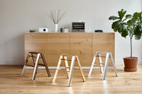 Entdecken Sie den Lucano 2 Step Klapptritt – die elegante Lösung für Ihre Höhenbedürfnisse! Während herkömmliche Leitern oft im Haushaltshelfer-Bereich verschwinden, hebt sich dieser Tritthocker von Thomas Merlo & Partner durch sein ansprechendes Design ab. Entwickelt von dem renommierten japanischen Designer Chiaki Murata, vereint dieser Klapptritt Funktionalität mit ästhetischer Raffinesse, perfekt für jeden Raum von der Bibliothek bis zur Boutique. Hergestellt aus hochwertigem pulverbeschichtetem Aluminium, ist diese Leiter nicht nur robust, sondern auch leichtgewichtig, mit nur 3 kg Gewicht. Mit einer Arbeitshöhe von 56 cm im ausgeklappten Zustand und einer kompakten Größe von nur 15,5 cm Breite und 62 cm Höhe im zusammengeklappten Zustand ist der Lucano 2 Step Klapptritt äußerst platzsparend und praktisch. Neben dem zweistufigen Lucano Klapptritt bietet Thomas Merlo & Partner auch die dreistufige Trittleiter "3 Step" mit zusätzlichem Haltebügel an, um Ihren Bedürfnissen noch besser gerecht zu werden. Entdecken Sie noch heute die Vielseitigkeit und Qualität dieser hochwertigen Trittleiter.