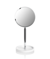 Feine Verarbeitung, starke Qualität. Der Standkosmetikspiegel hat einen runden Fuß aus Mineralguss und einen kreisrunden Spiegel aus glänzendem Chrom, dessen hochwertige Verabeitung auf den ersten Blick sichtbar ist. Der Spiegel verfügt über eine einfache sowie 4 fache Vergrößerung, die ihn als perfekter Begleiter für das Make Up oder die Tagespflege unverzichtbar machen. Der passende kreisrunde Standfuß aus hygienischem Mineralguss dient ebenfalls als praktische Ablage. In den 2 Ausführungen Schwarz oder Weiss matt erhältlich.