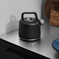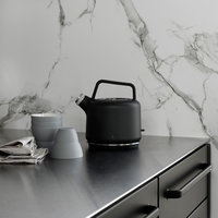 Hot or not? Der Wasserkocher VIPP 501 im lässigen schwarz matten Look verfügt über eine hochmoderne Technik. Die isolierte Kanne aus pulverbeschichtetetem Stahl mit einem Liter Fassungsvermögen ist abnehmbar und wird zum Erhitzen auf einen drehbaren Edelstahlfuß gestellt, der über ein chices textilüberzogenes Kabel angeschlossen wird. Über einen winzigen Kippschalter wird der Wasserkocher in Betrieb genommen und meldet über ein kleinen LED den Betriebszustand an. Abwarten und Tee trinken!